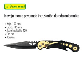 NAVAJA 4" PAVONADA CON DORADO AUTOMATICA CLIP